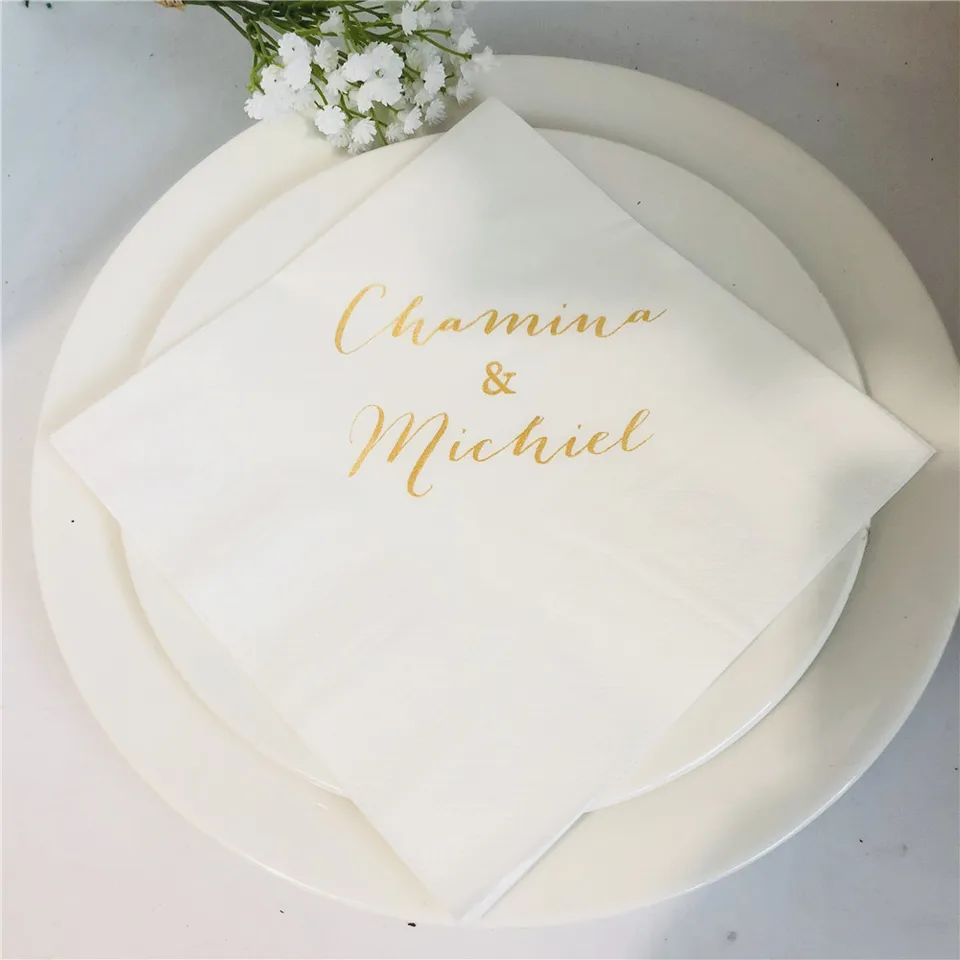 100pcs Custom Bride Groom Names Wedding Paper Napkins Personalized