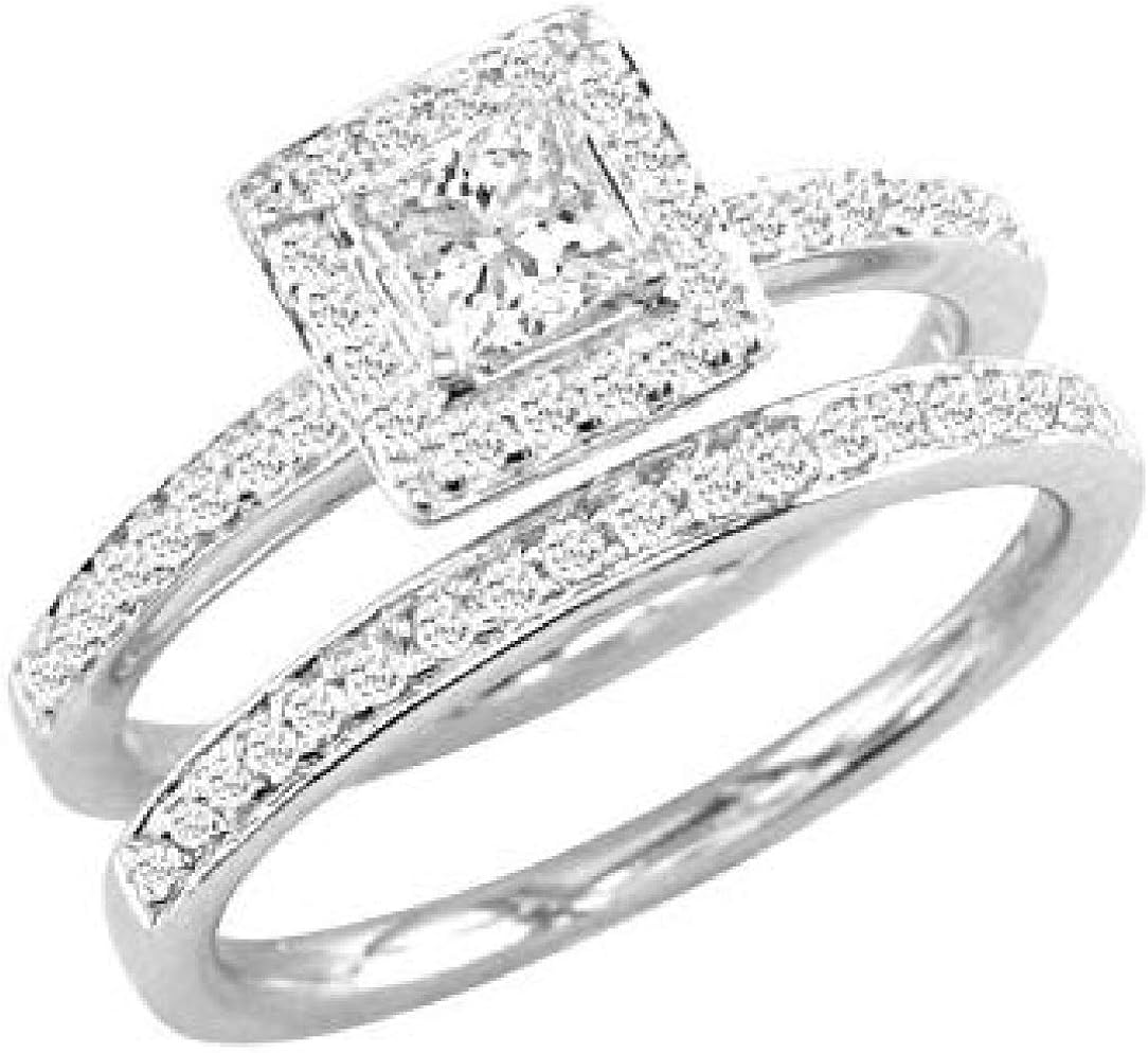 Amazon Com 2pc Halo Princess Wedding Ring Set Wedding Rings